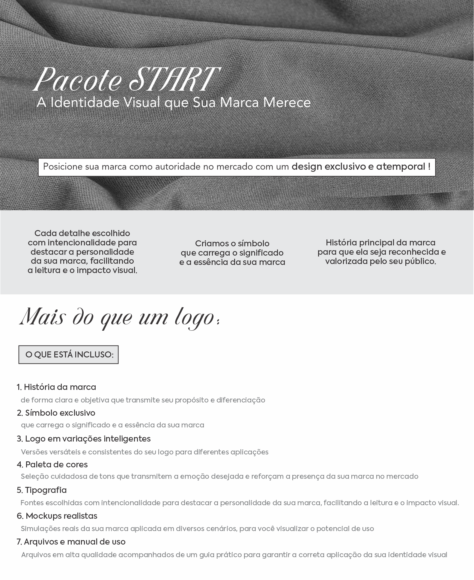 Invista em uma identidade visual que faça sua marca se destacar e conquistar o mercado. Solicite agora o Pacote START e transforme a percepção do seu negócio!